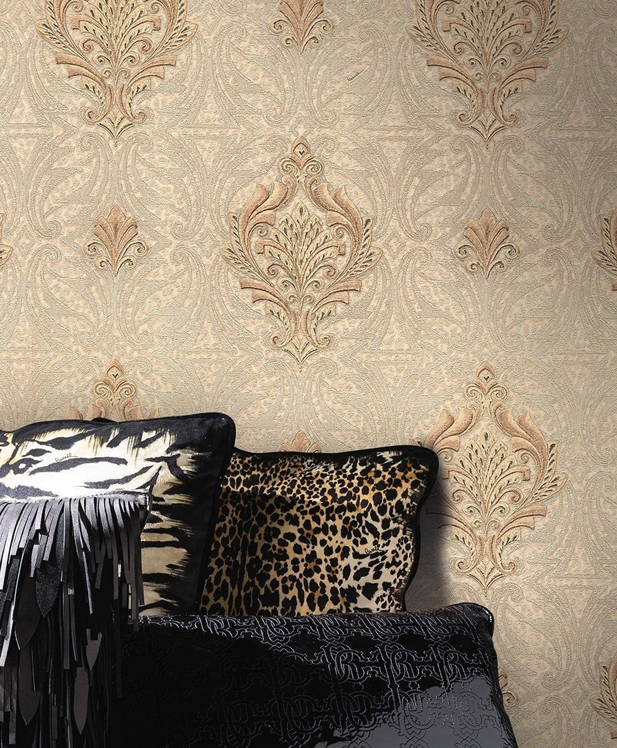 - Tapeta RC19011 firmy Roberto Cavalli Home z kolekcji Home NO. 8. Ozdobne ornamenty z wyczuwalnym w dotyku tłoczeniem. Tapeta winylowa na flizelinie, odporna na szorowanie oraz działanie światła.