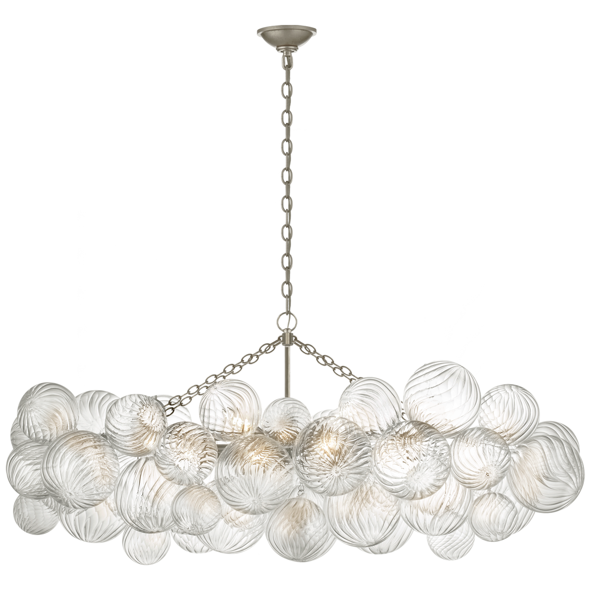 - Żyrandol Talia Medium projektu Julie Neill został w kolorze polerowanego srebra wykończony szkłem transparentnym. Lampa posiada gniazdo na żarówkę E 14.