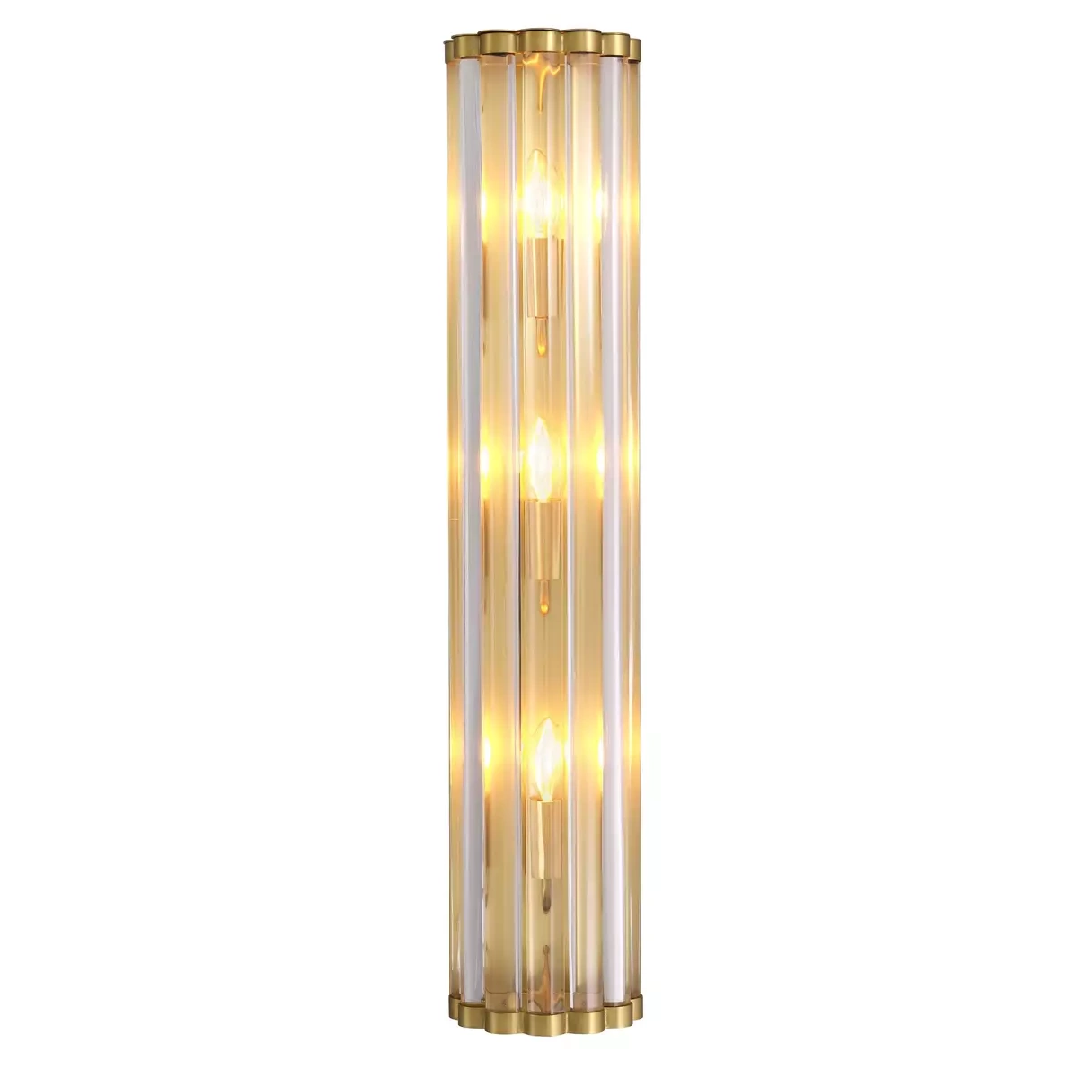 - Kinkiet Amalfi firmy Eichholtz został wykonany z antycznego mosiądzu oraz wykończony szkłem transparentnym. Lampa posiada gniazdo na żarówkę E 14.