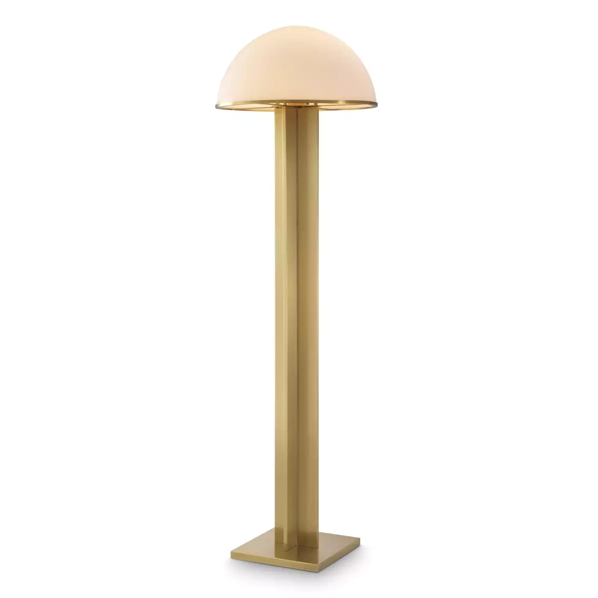 Lampa podłogowa Berkley firmy Eichholtz została wykonana z antycznego mosiądzu oraz wykończona białym szkłem. Lampa posiada gniazdo na żarówkę E 27. Wymiary: 25 x 39 x H 135 cm.