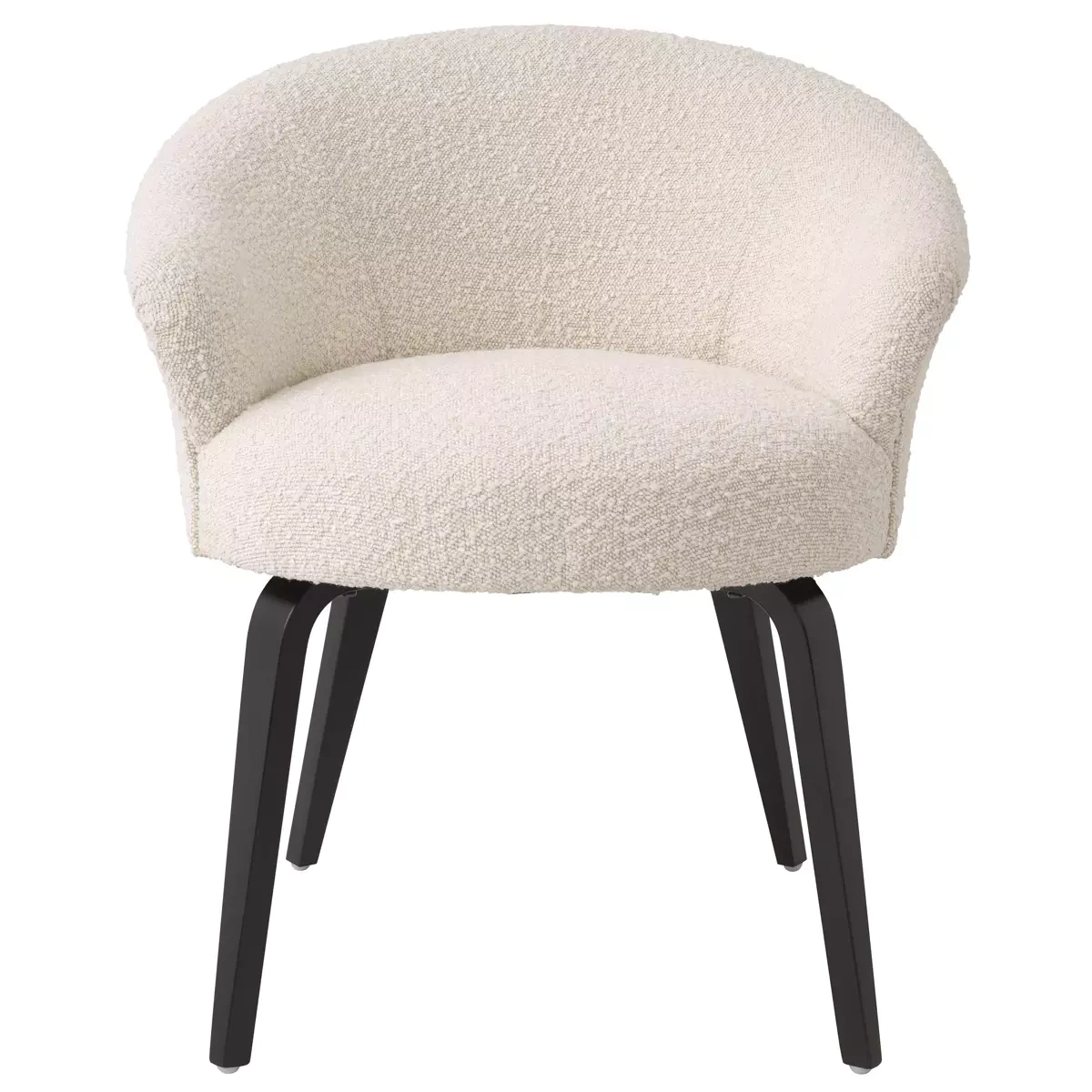 - Krzesło Moretti firmy Eichholtz zostało wykonane tkaniną w kolorze Bouclé cream oraz wykończone nogami w czarnym kolorze.
