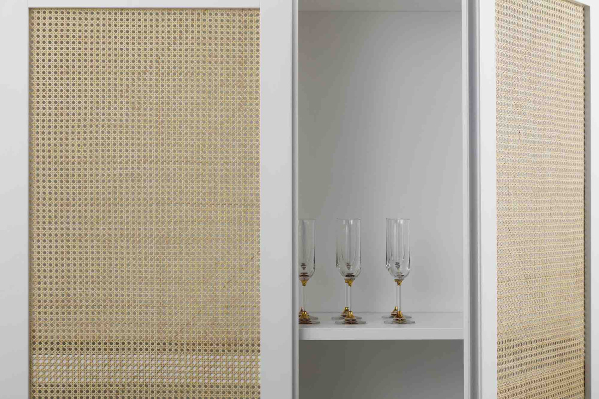 • Komoda Quisisana firmy Dom Edizioni została wykonana z drewna oraz wykończona drzwiami ze słomy wiedeńskiej.