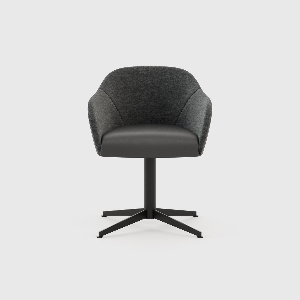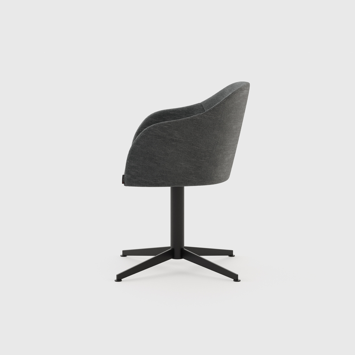 • Krzesło biurowe Lili firmy Laskasas zostało wykonane z wiedeńskiej tkaniny Piera anthracite i Seoul black oraz wykończone podstawą z żelaza.