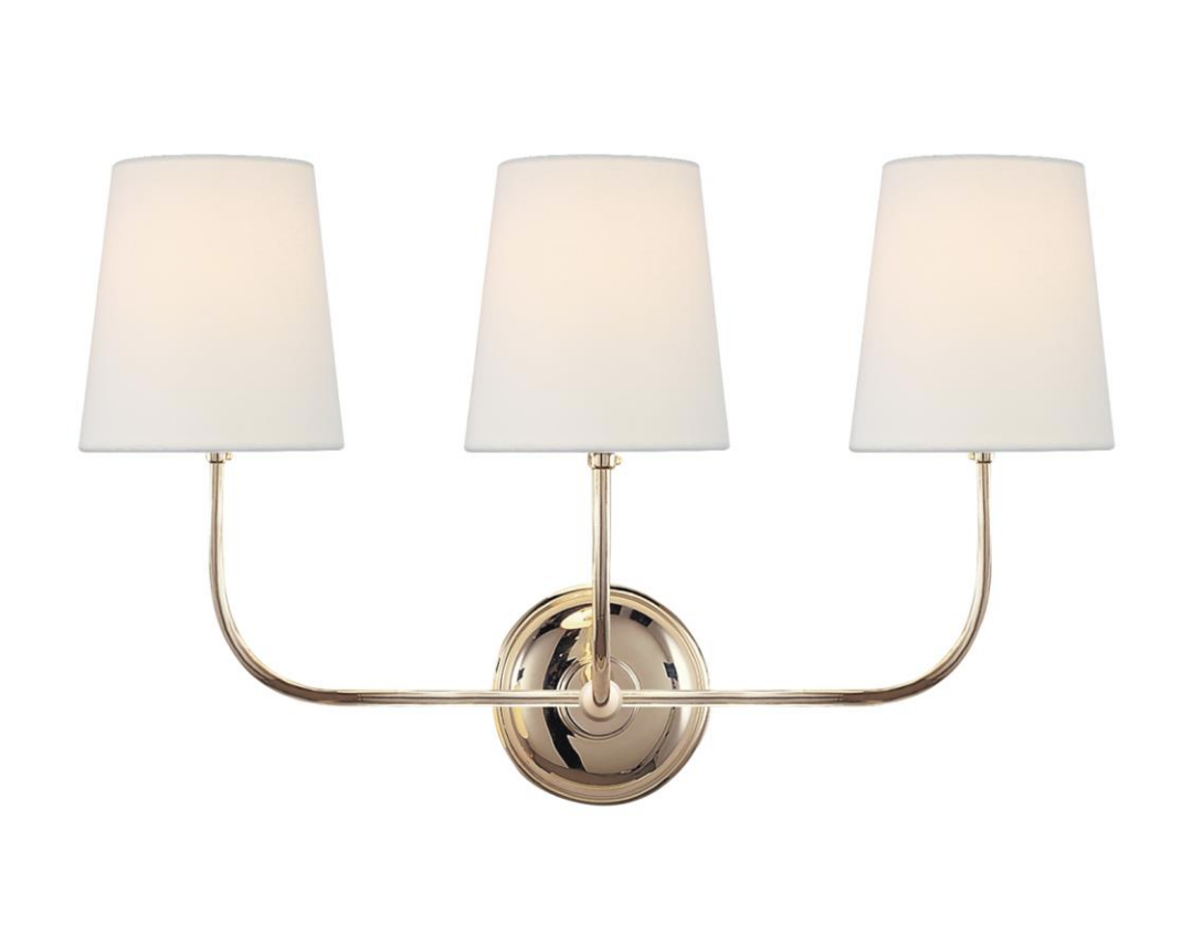 - Kinkiet Vendome projektu Thomas O'Brien marki Visual Comfort w polerowanym niklu wykończony lnianymi abażurami.