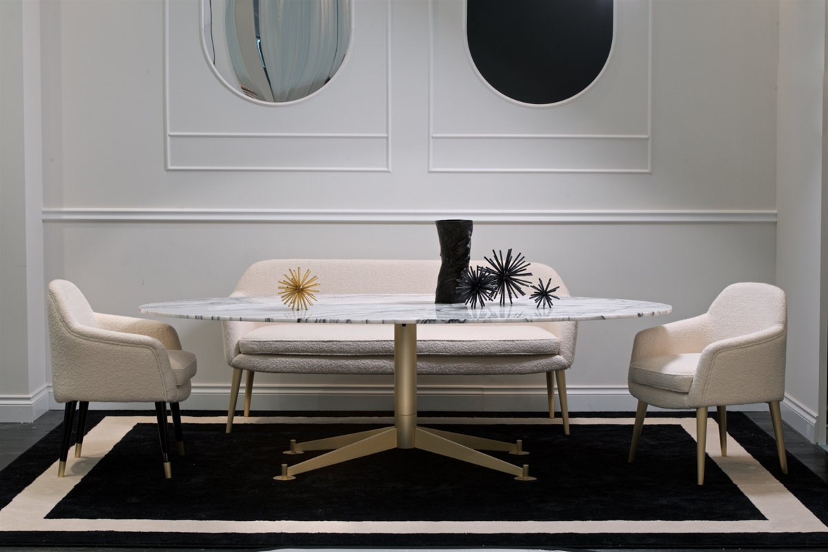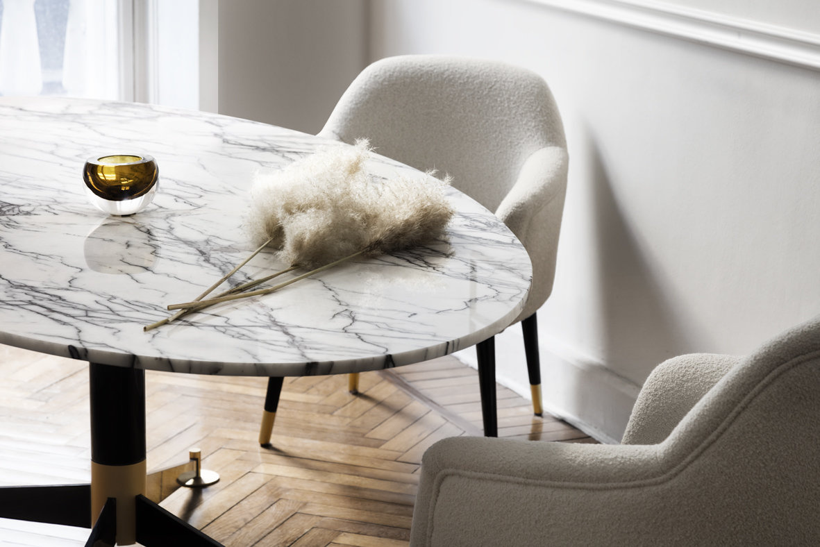 • Stół Filippo firmy Dom Edizioni został wykonany z mosiądzu oraz wykończony blatem z marmuru. Produkt dostępny w różnych rozmiarach oraz wykończeniach.