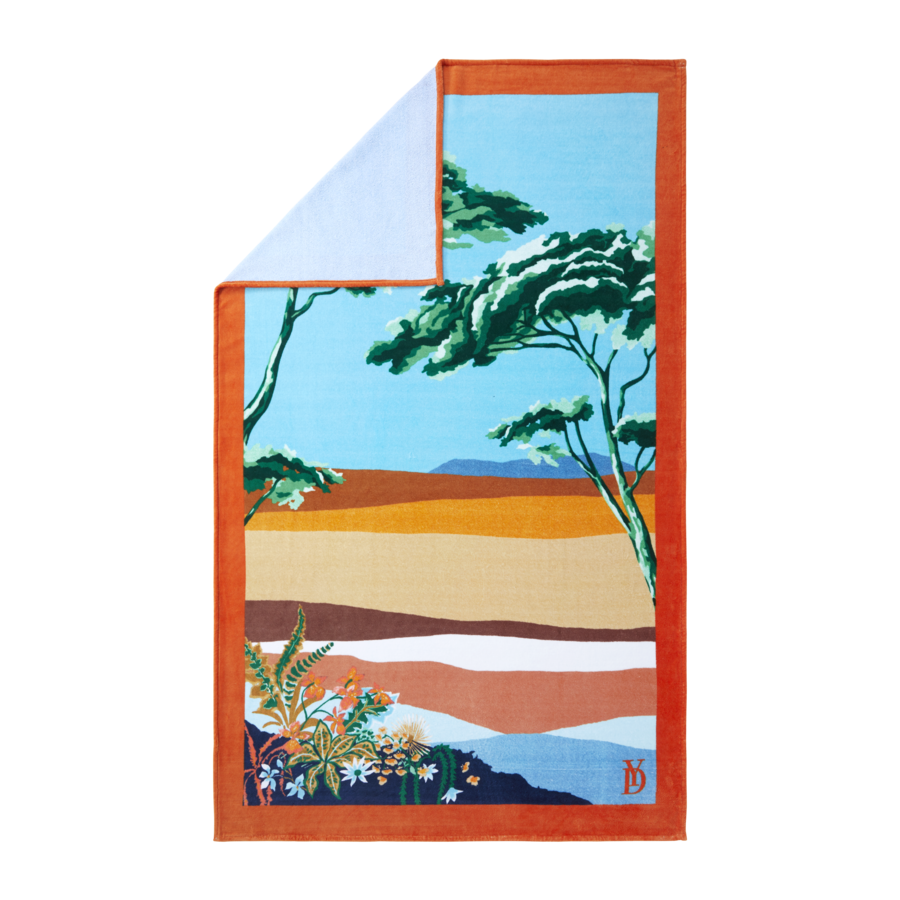 - Ręcznik plażowy Parasols firmy Yves Delorme został wykonany z 100% bawełny 450g / m² oraz wykończony wakacyjnym nadrukiem z weluru.