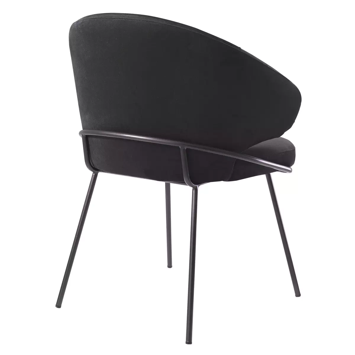 - Krzesło Kinley firmy Eichholtz zostało wykonane tkaniną w kolorze Roche black oraz wykończone stalowymi nogami.