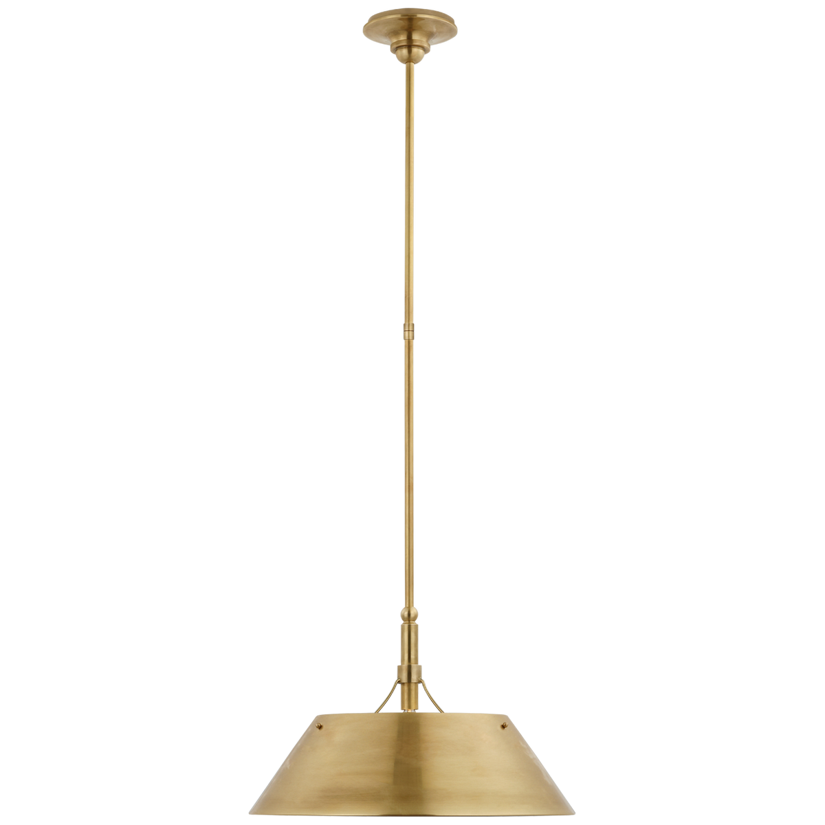 - Lampa wisząca Turlington Large projektu Thomas O'Brien z ręcznie przecieranego, antycznego mosiądzu. Lampa posiada gniazdo na żarówkę E 14.