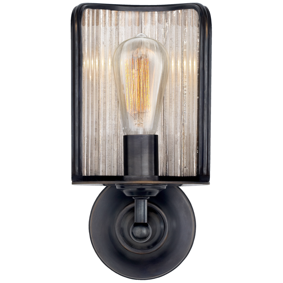 Kinkiet Rivington Small firmy Ralph Lauren Home został wykonany w kolorze brązowym oraz wykończony prążkowanym lustrem. Lampa posiada gniazdo na żarówkę E 27. Wymiary: 31,8 x 15,2 x 19 cm.