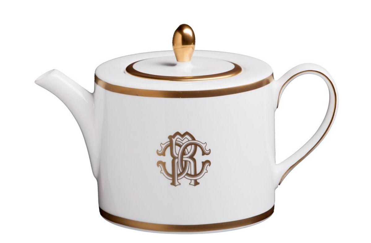 • Imbryk firmy Roberto Cavalli Home, z kolekcji Silk Gold został wykonany z wysokiej jakości porcelany kostnej. Odznacza się zewnętrzną powłoką, pokrytą złotem oraz monogramem wytłoczonym na zewnątrz Roberto Cavalli.