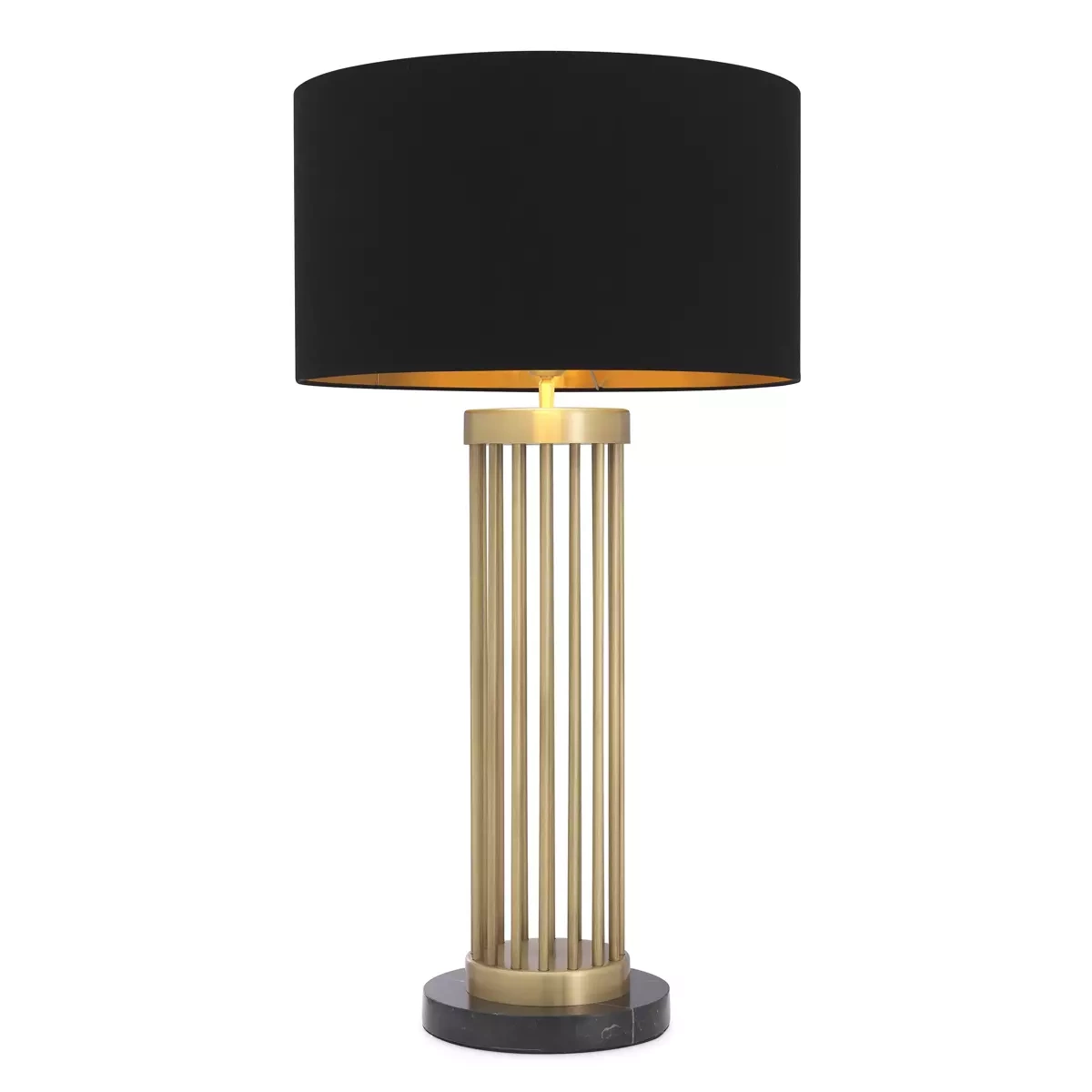 - Lampa stołowa Condo firmy Eichholtz została wykonana z antycznego mosiądzu oraz wykończona podstawą z czarnego marmuru. Lampa posiada gniazdo na żarówkę E 27.