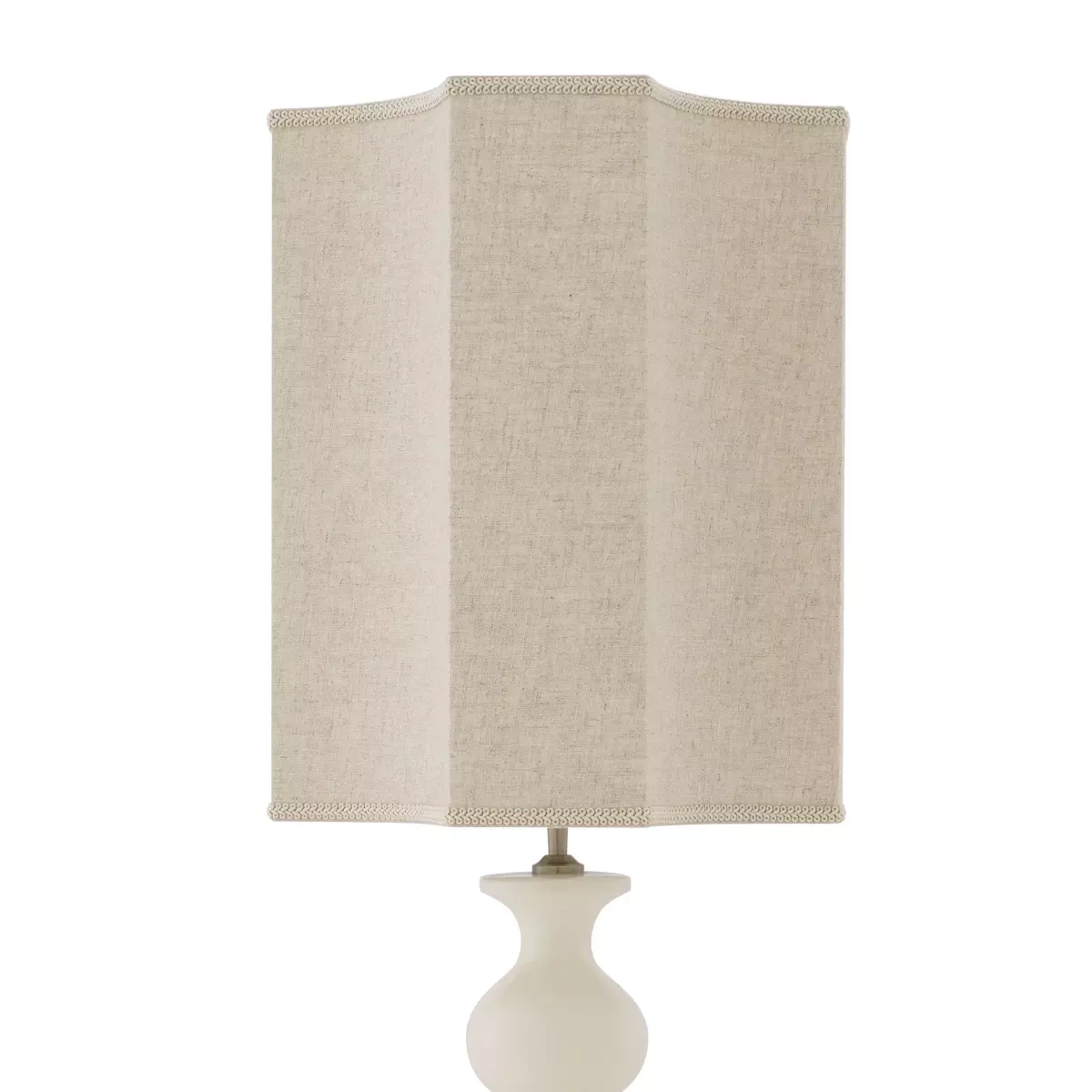 - Lampa stołowa Mabel firmy Eichholtz została wykonana z białej ceramiki, mosiądzu oraz wykończona abażurem z lnu. Lampa posiada gniazdo na żarówkę E 27.