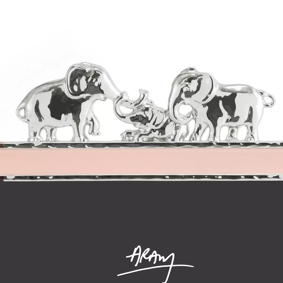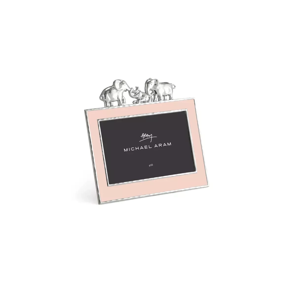 - Ramka na zdjęcie Michael Aram, z kolekcji Elephant została wykonana z niklu w różowym kolorze oraz wykończona słoniami. Kolekcja Elephant inspirowana jest radością i zachwytem dzieci.
