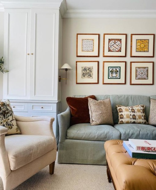- Kinkiet Hackney projektu J. Randall Powers marki Visual Comfort z ręcznie przecieranego antycznego mosiądzu, wykończony lnianym abażurem. Lampa posiada gniazdo na żarówkę E 14.