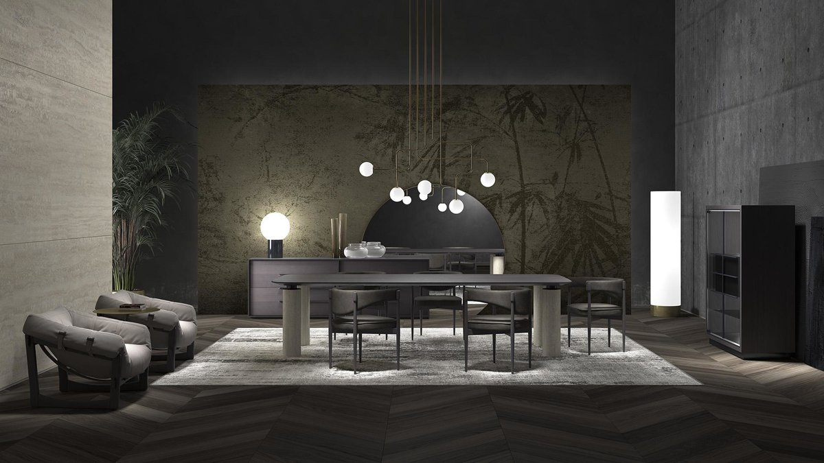 - Krzesło Harlem marrki Gianfranco Ferré Home zostało wykonane z litego drewna bukowego w kolorze Smokey Grey oraz wykończone skórzaną tapicerką.