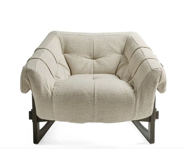 Siedzisko i oparcie z ekspansywnej pianki poliuretanowej o zmiennej grubości i wysokiej gęstości. Tapicerka z tkaniny lub skóry z kolekcji, z ozdobnymi przeszyciami ton w ton. Wyściółka jest przymocowana do konstrukcji za pomocą bocznych pasków. Produkt dostępny w różnych wykończeniach tkanin oraz skór. Podana cena jest ceną za mebel w tkaninie z kategorii A.
