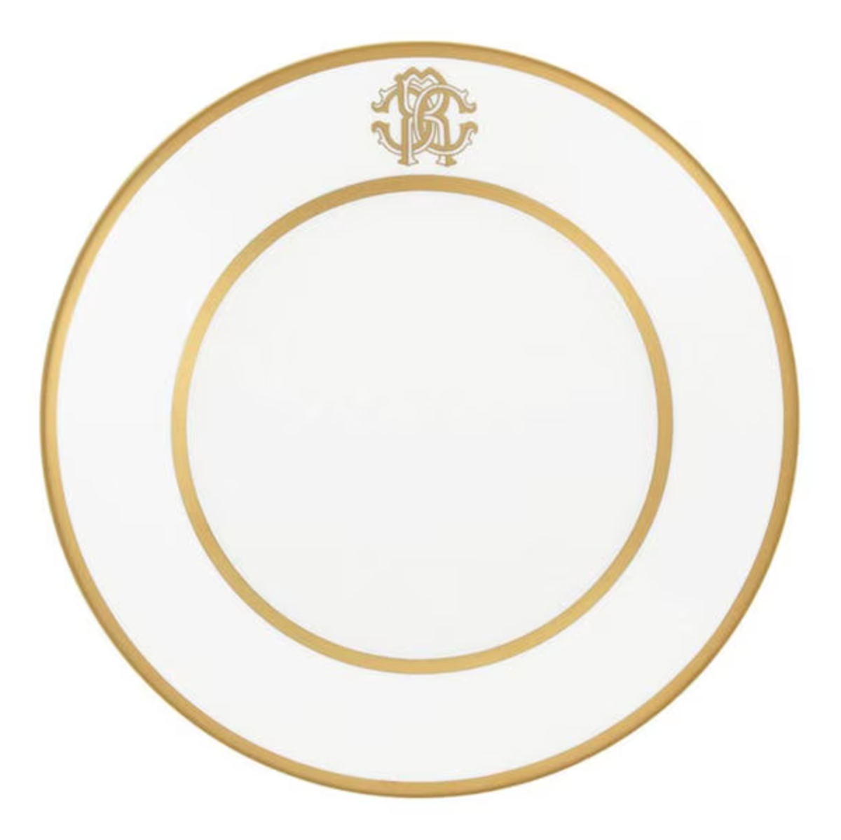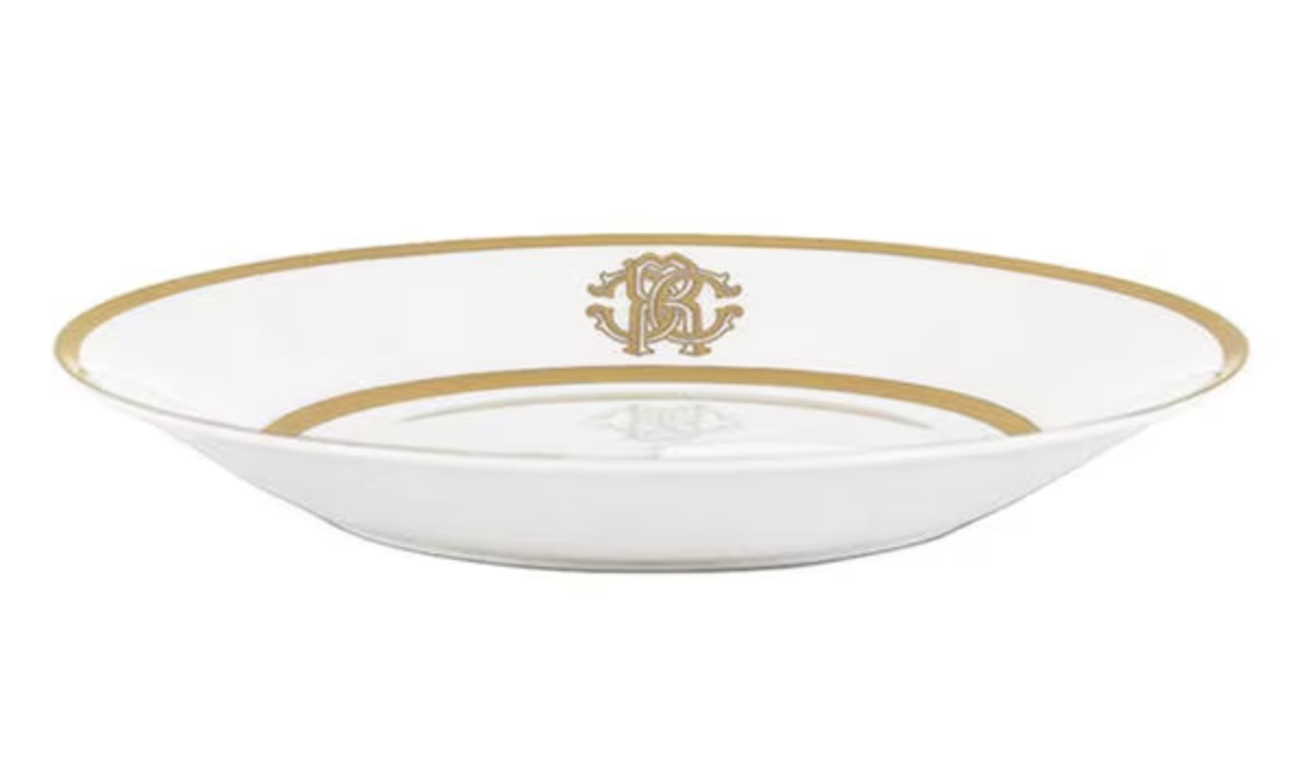 - Zestaw sześciu talerzy do zupy firmy Roberto Cavalli Home, z kolekcji Silk Gold został wykonany z delikatnej porcelany kostnej, charakteryzuje się kunsztownymi złotymi zdobieniami na krawędziach oraz złotym monogramem.