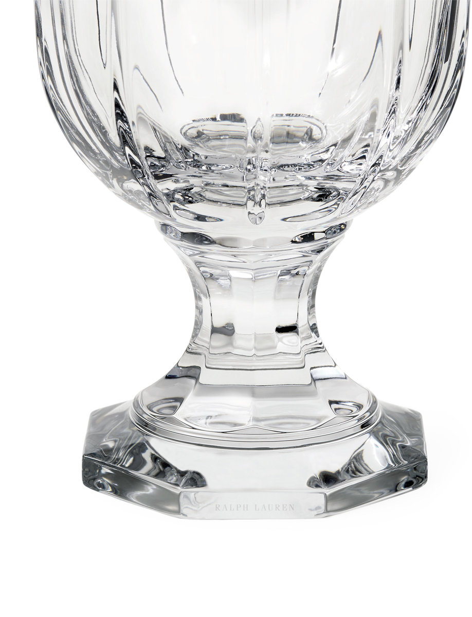 Wazon Small Ralph Lauren Home, z kolekcji Coraline nawiązuje do klasycznego stylu georgiańskiego w nowoczesnej, subtelnej interpretacji. Smukła sylwetka została podkreślona delikatnymi fasetami, które pięknie załamują światło. Wazon wykonano z wysokiej jakości ręcznie ciętego szkła kryształowego, co świadczy o kunszcie wykonania i dbałości o detale. Produkt zapakowany jest w firmowe, tłoczone pudełko prezentowe. Wymiary małego wazonu: wys. 27 x szer. 15 cm.