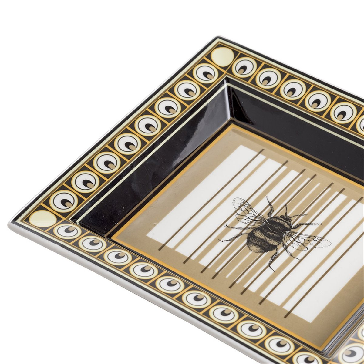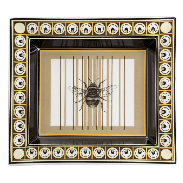 - Taca Bee in the middle została wykonana z porcelany w czarno beżowym kolorze z widocznym wzorem pszczoły.