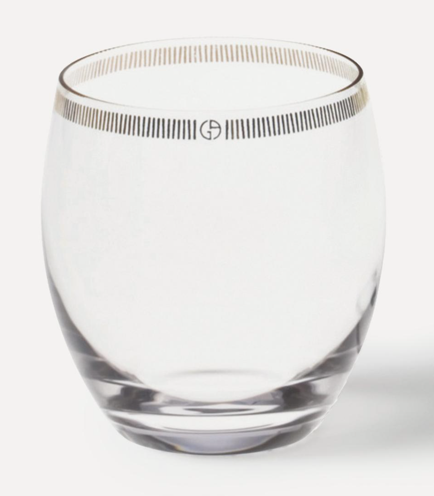 - Szklanka do wody firmy Armani Casa, z kolekcji Dvorak został wykonany z kryształu oraz wykończony 18-karatowym złotem. Kieliszek posiada logo na spodzie.