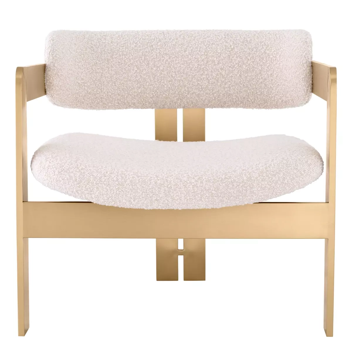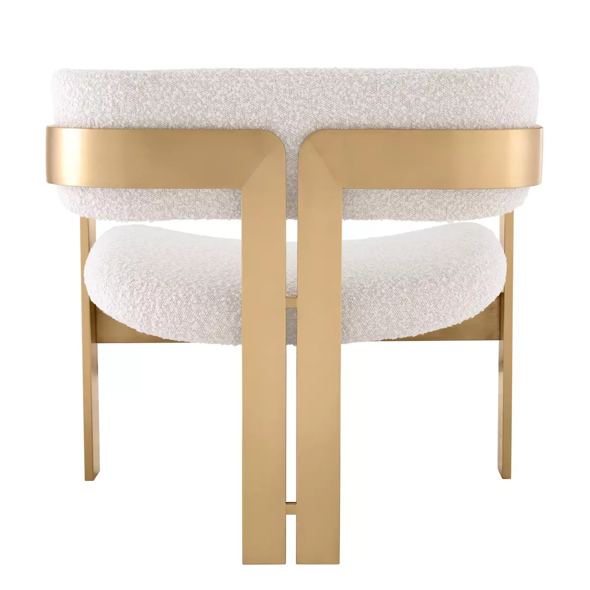 - Krzesło Donato firmy Eichholtz zostało wykończone tkaniną bouclé cream, nogi szczotkowanym mosiądzem.