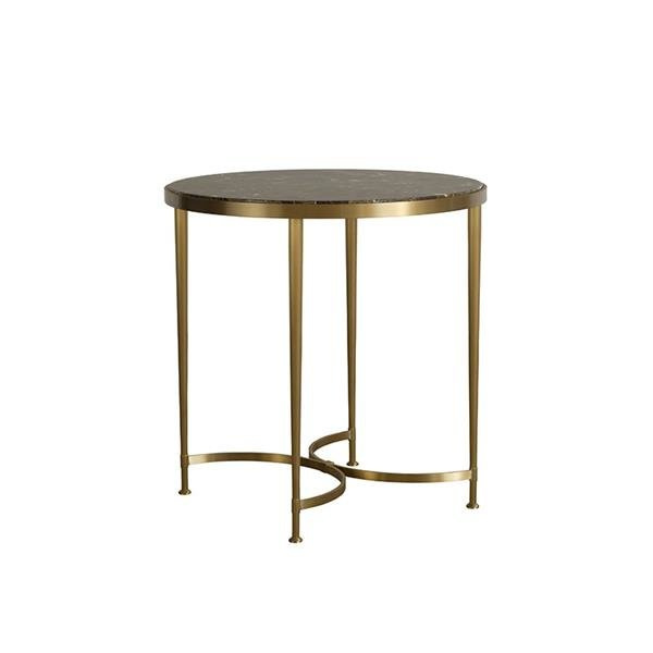 Stolik Ferrando firmy Galimberti Nino został wykonany blatem z marmuru malowanego poliestrem. Struktura z satynowego mosiądzu. Wymiary: Ø 70 x 70 cm.