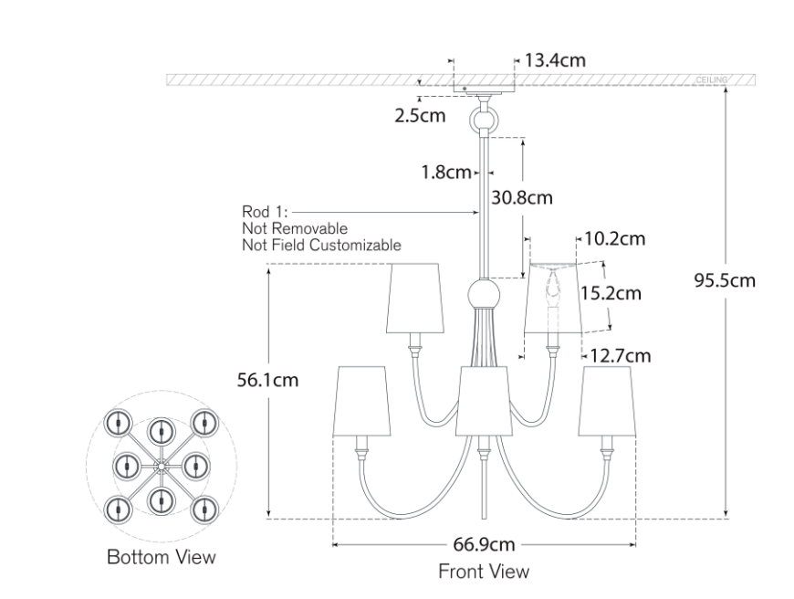 - Żyrandol Reed Large projektu Thomas O'Brien marki Visual Comfort z polerowanego niklu z lnianymi abażurami. Lampa posiada gniazdo na żarówkę E 14.