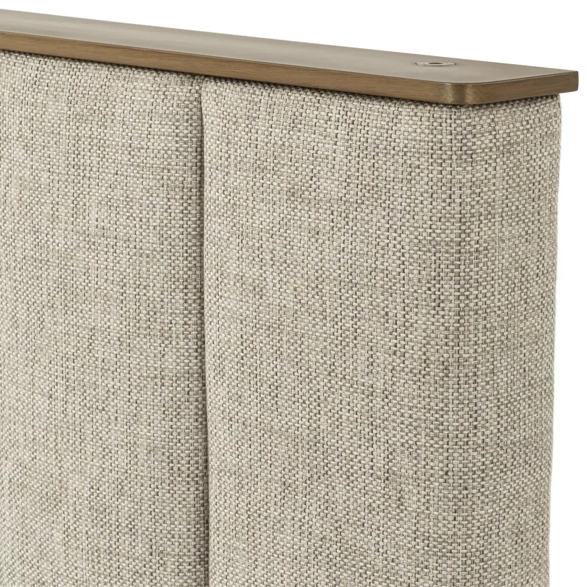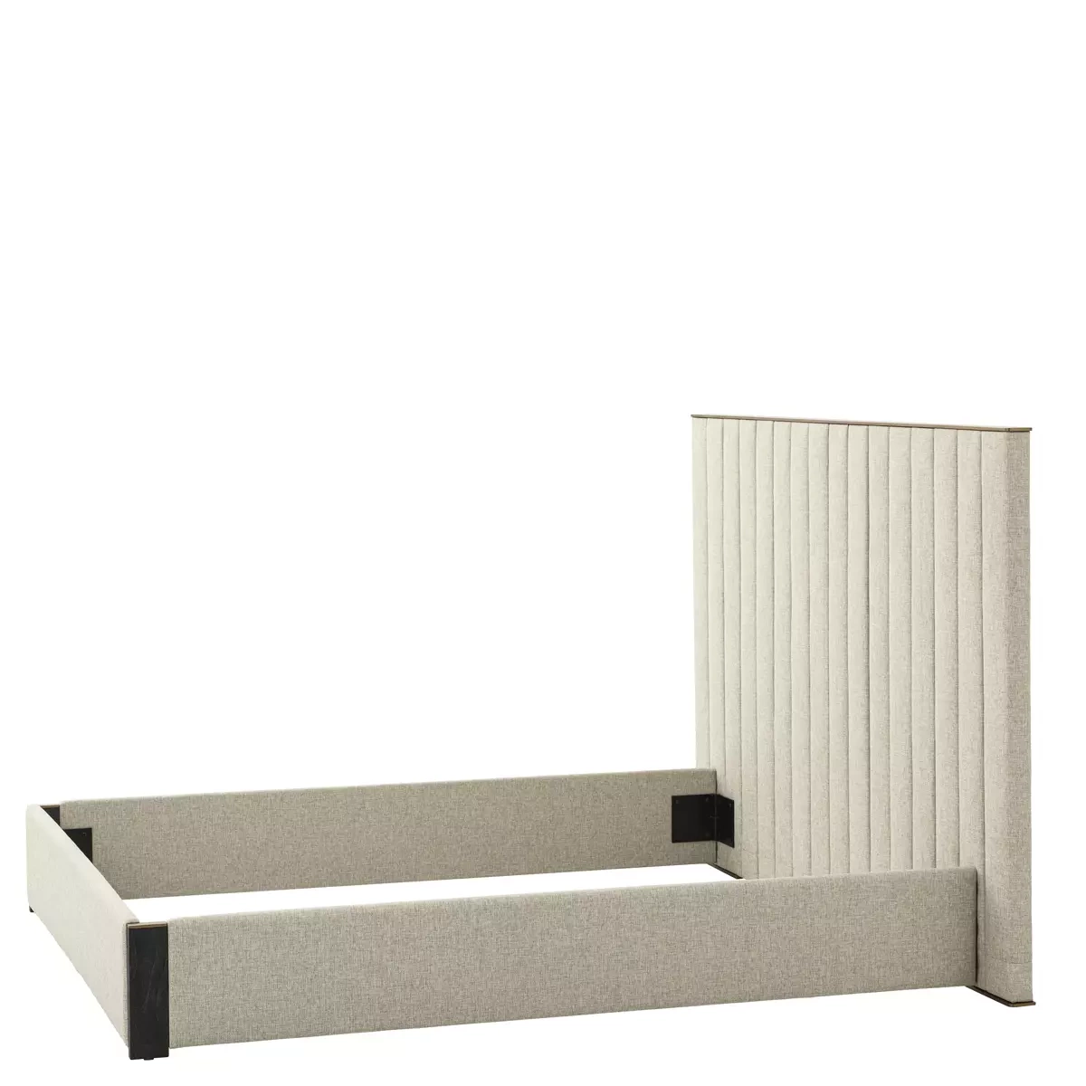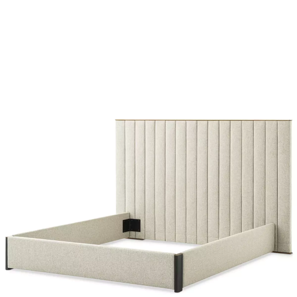 - Rama łóżka Elisio firmy Eichholtz została wykonana w kremowym kolorze oraz wykończona szczotkowanym mosiadzem.