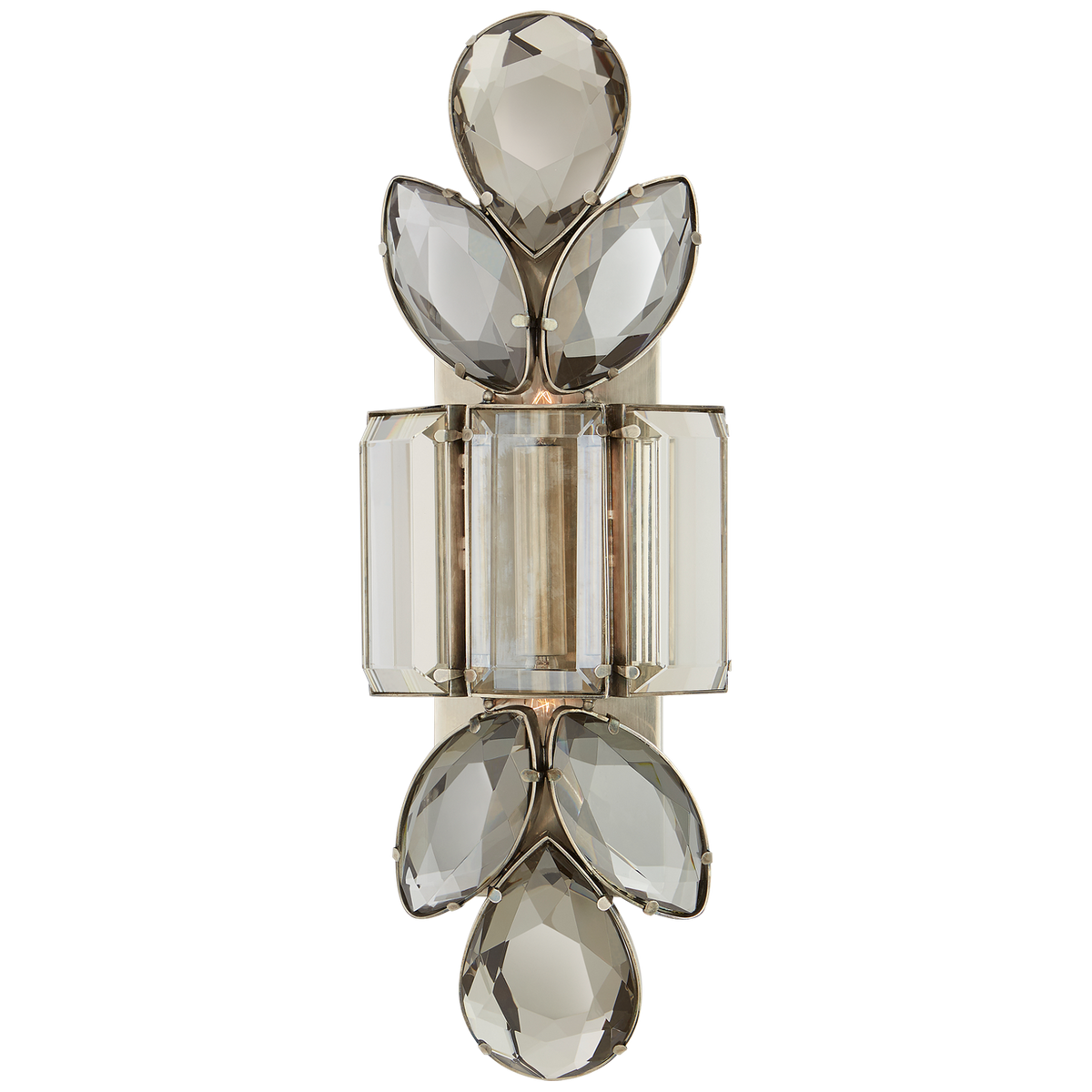 - Kinkiet Lloyd Large projektu Kate Spade New York został wykonany w kolorze antycznego niklu oraz wykończony przydymionym kryształem. Lampa posiada gniazdo na żarówkę E 14.