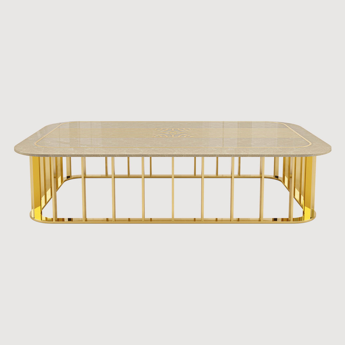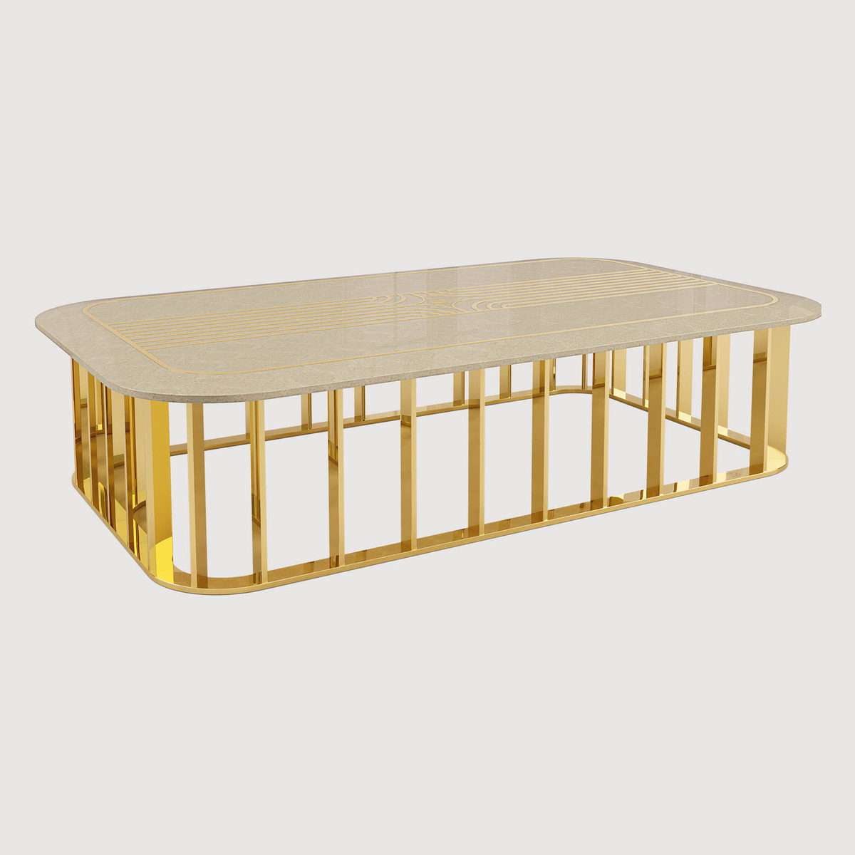 - Stolik kawowy Triton firmy Bruno Zampa w podstawowej wersji wykończony złotą metalową ramą i drewnianym blatem. Marmurowe wykończenie za dopłatą. Produkt dostępny w różnych wykończeniach.