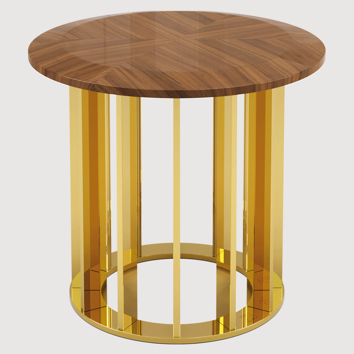 - Stolik kawowy Triton firmy Bruno Zampa w podstawowej wersji wykończony złotą metalową ramą i drewnianym blatem. Marmurowe wykończenie za dopłatą. Produkt dostępny w różnych wykończeniach.
