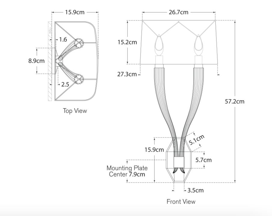 Kinkiet Ruhlmann Double projektu Chapman & Myers został wykonany z mosiądzu oraz wykończony jasnym abażurem. Lampa posiada gniazdo na żarówke E 14. Wymiary: 57,2 x 15,9 x 27,4 cm.
