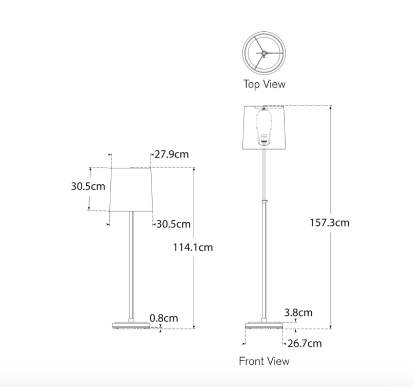 - Wymiary: wys.: 111.8cm - 152.4 cm x szer. 30.5cm x podstawa: 26.7cm