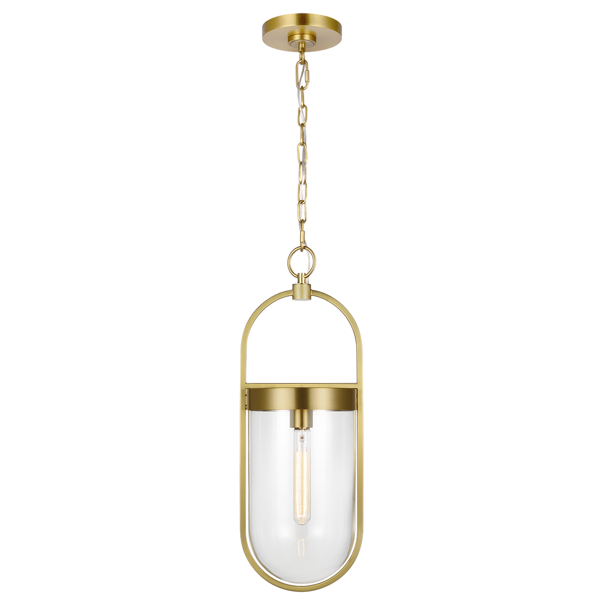 Lampa wisząca Blaine Small projektu Chapman & Myers została wykonana w szczotkowanym mosiądzu oraz wykończona przeźroczystym szkłem.