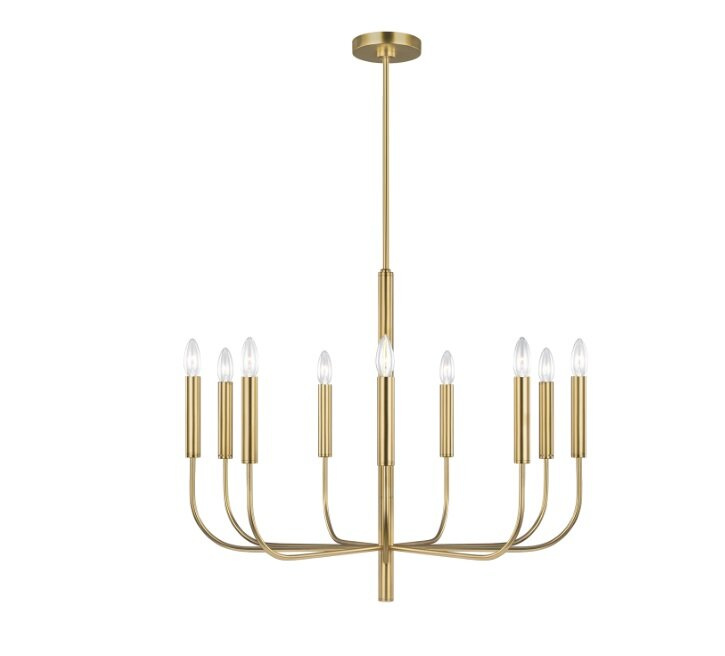 - Żyrandol Brianna Medium projektu Ellen DeGeneres w kolorze polerowanego mosiądzu. Lampa posiada gniazdo na żarówkę E 14. Wymiary: 206 x 76 x 14cm.