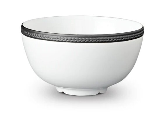 Miseczka na płatki L'Objet, z kolekcji Soie Tressée została wykonana z porcelany w białym kolorze z czarną lamówką. Dostępna również z warkoczami w kolorze białym, a także z ręcznie złoconego 24-karatowego złota.