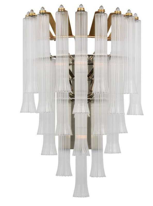 • Kinkiet Lorelei projektu Julie Neill w kształcie wodospadu, pozłacany z przezroczystym szkłem.