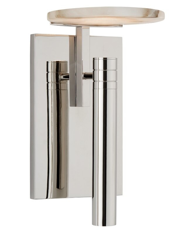 Kinkiet Melange projektu Kelly Wearstler został wykonany z polerowanego niklu i alabastru.