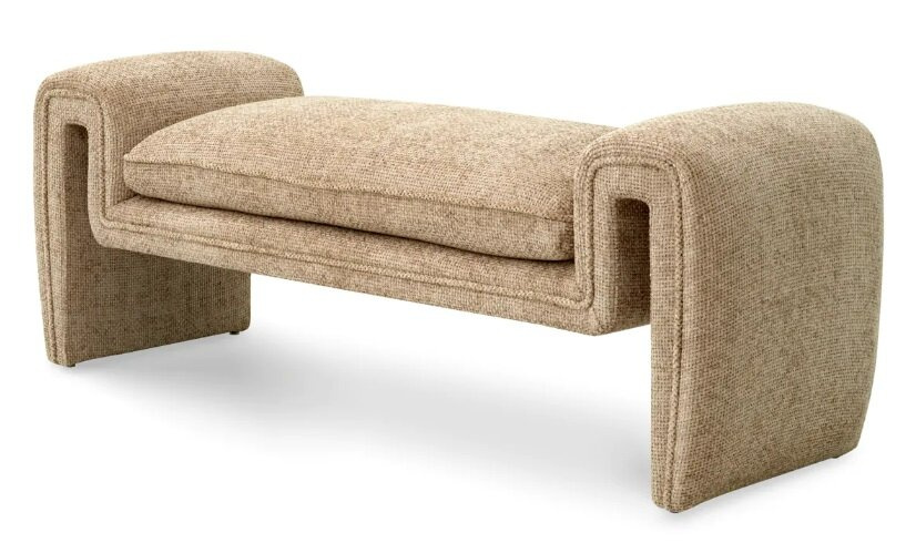 - Ławka Tondo S firmy Eichholtz pokryta tkaniną w kolorze piasku lyssa.