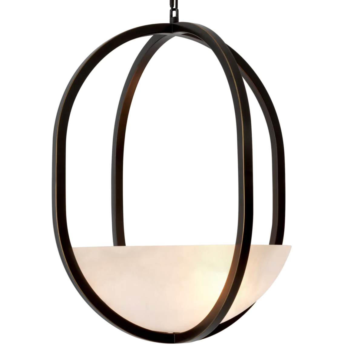 Żyrandol Scapa marki Eichholtz posiada alabastrową misę, otoczoną efektowną ramą z brązu.