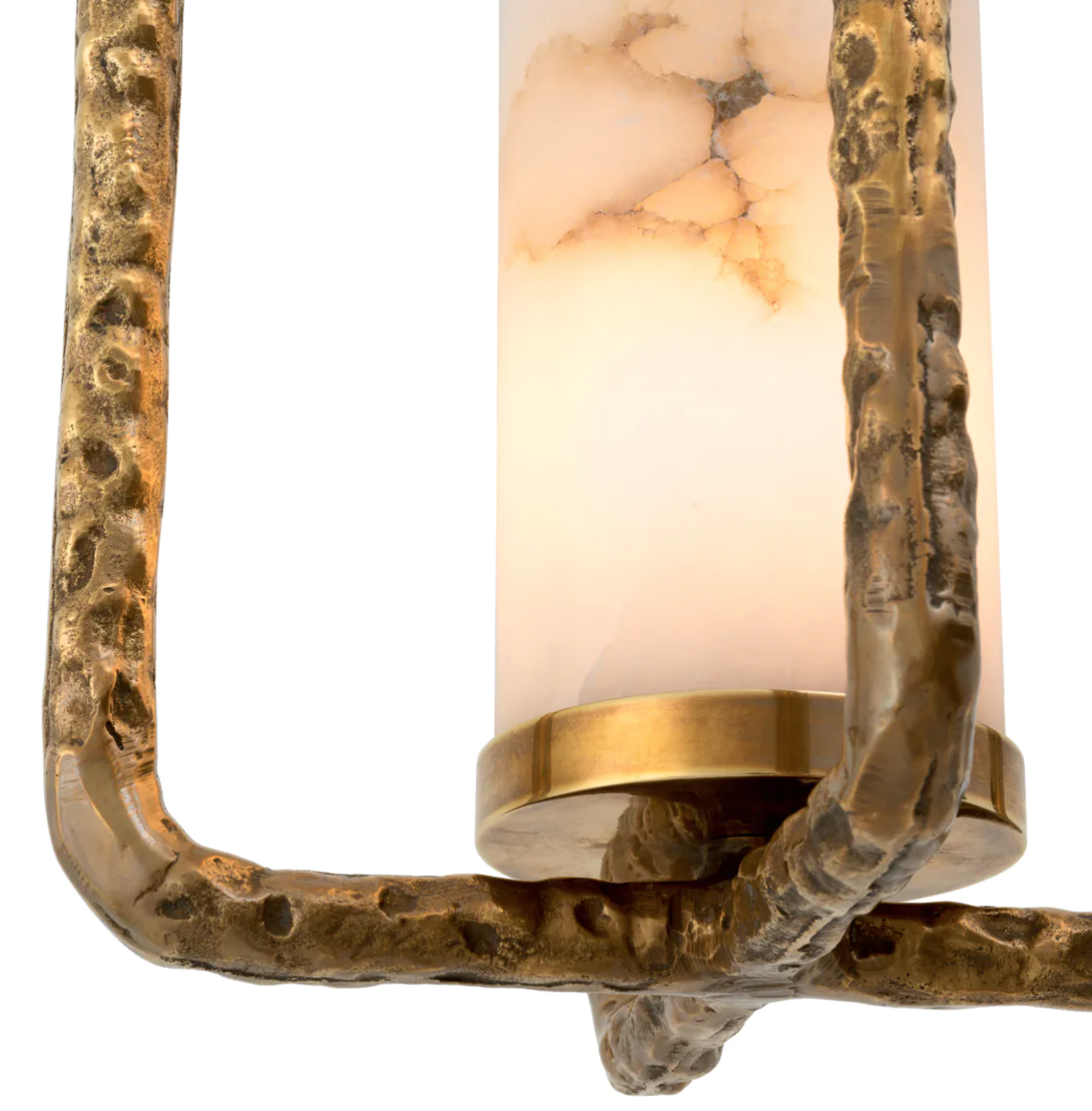 Żyrandol San Lorenzo marki Eichholtz posiada wykończenie w kolorze mosiądzu vintage. Połączenie metalu i alabastrowych elementów tworzy atrakcyjny efekt wizualny.