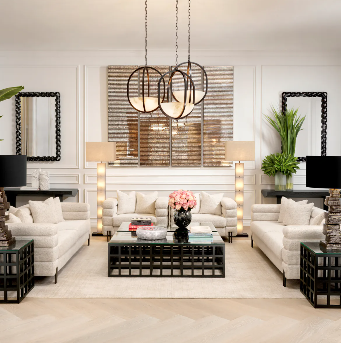- Stolik boczny Cubico marki Eichholtz posiada klasyczne czarne wykończenie i unikalną geometryczną podstawę wykonaną z eleganckiego czarnego szkła.