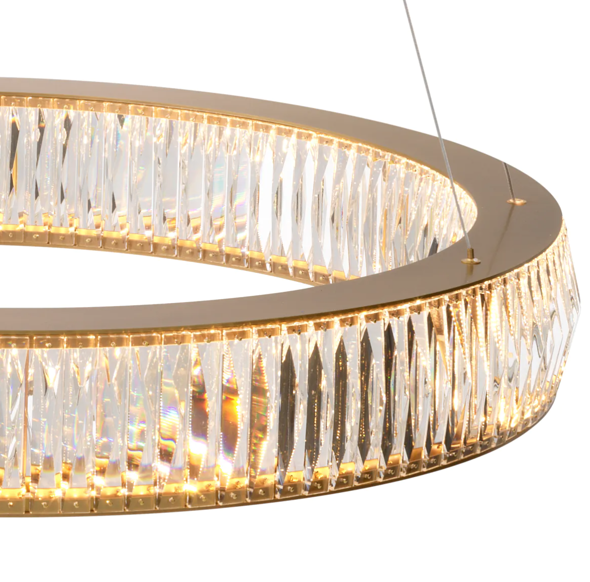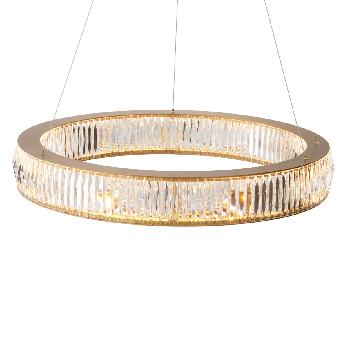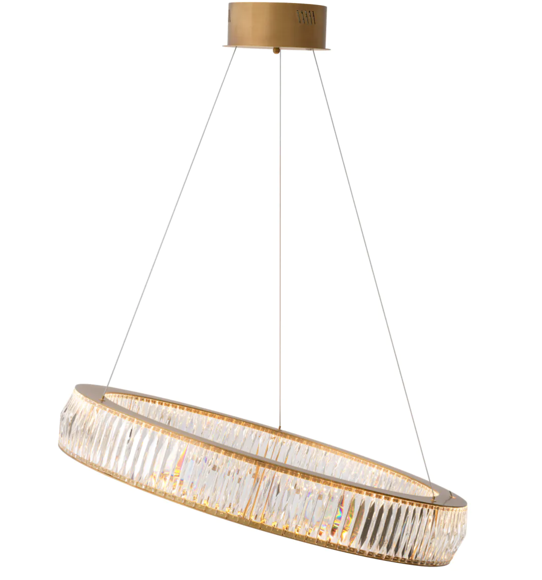 Żyrandol Vancouver L marki Eichholtz z kryształowego szkła i antycznego mosiądzu, posiada regulowane przewody, które umożliwiają na zawieszenie go na różnych wysokościach i pod różnymi kątami.