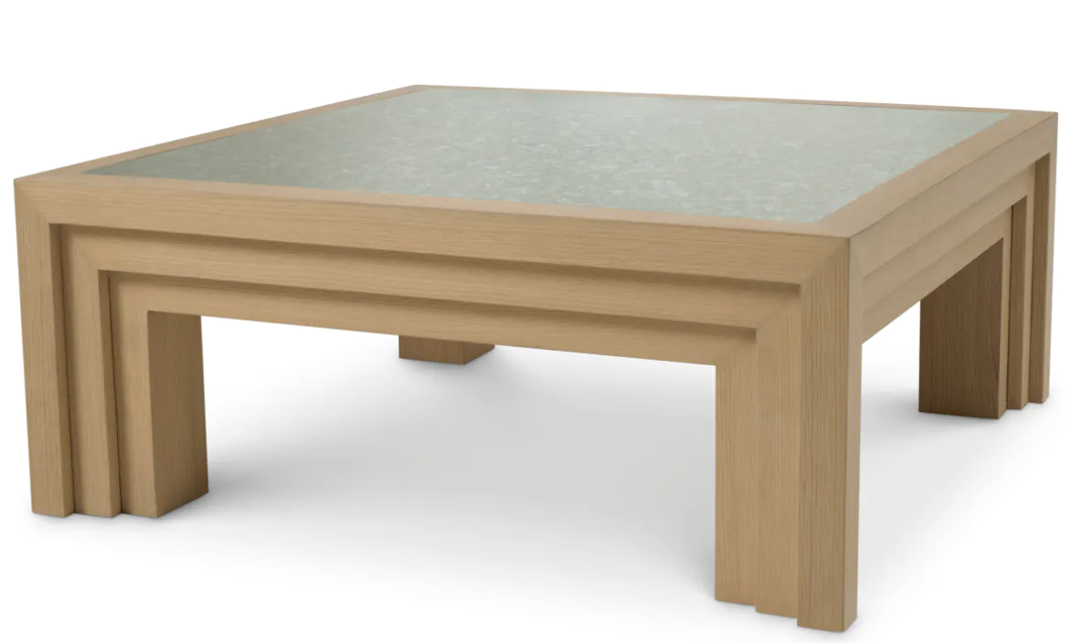 - Stolik kawowy Metropolitan marki Eichholtz wykonany z naturalnego forniru dębowego o otwartym usłojeniu i antycznego szkła lustrzanego. Stanowi część kolekcji The Met x Eichholtz.