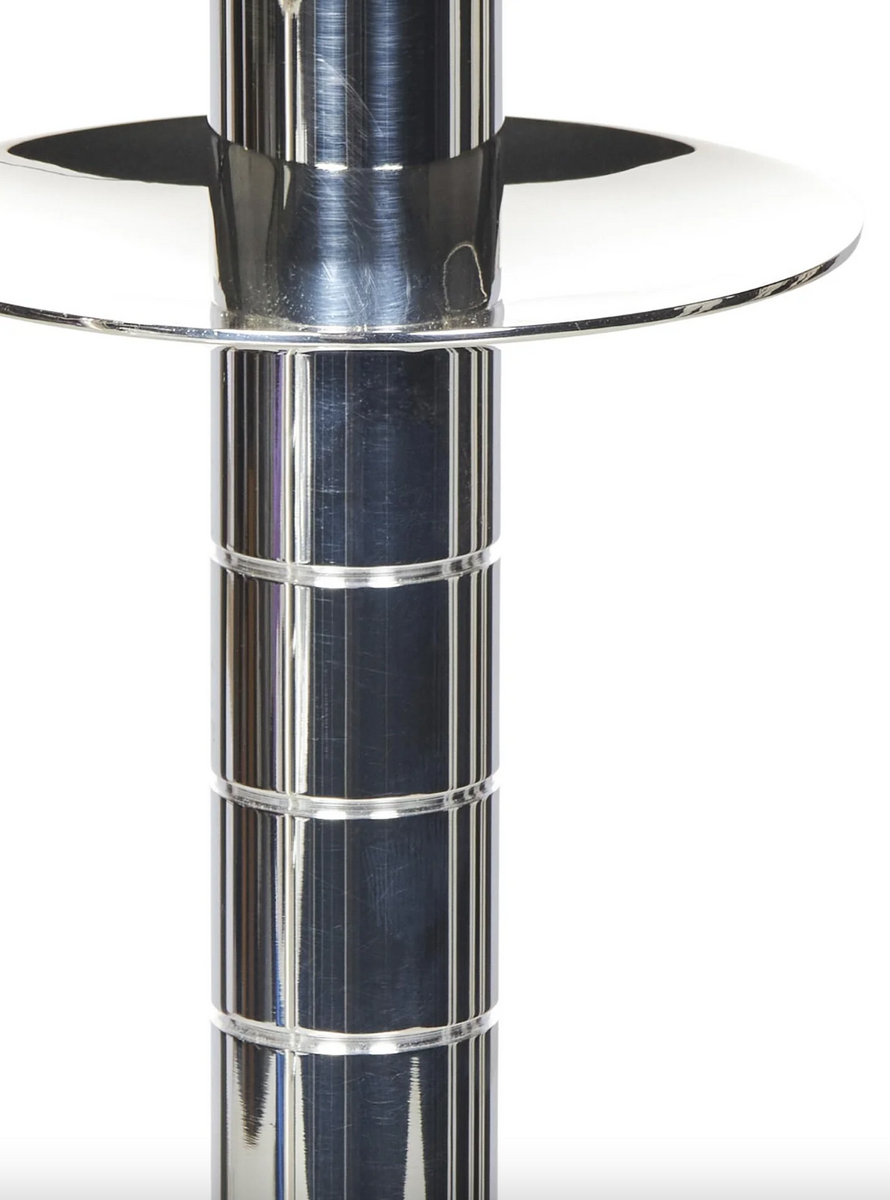 - Zestaw dwóch świeczników z kolekcji Montgomery marki Ralph Lauren, wykonany z posrebrzanego mosiądzu z rowkami inspirowanymi stylem Art Deco.