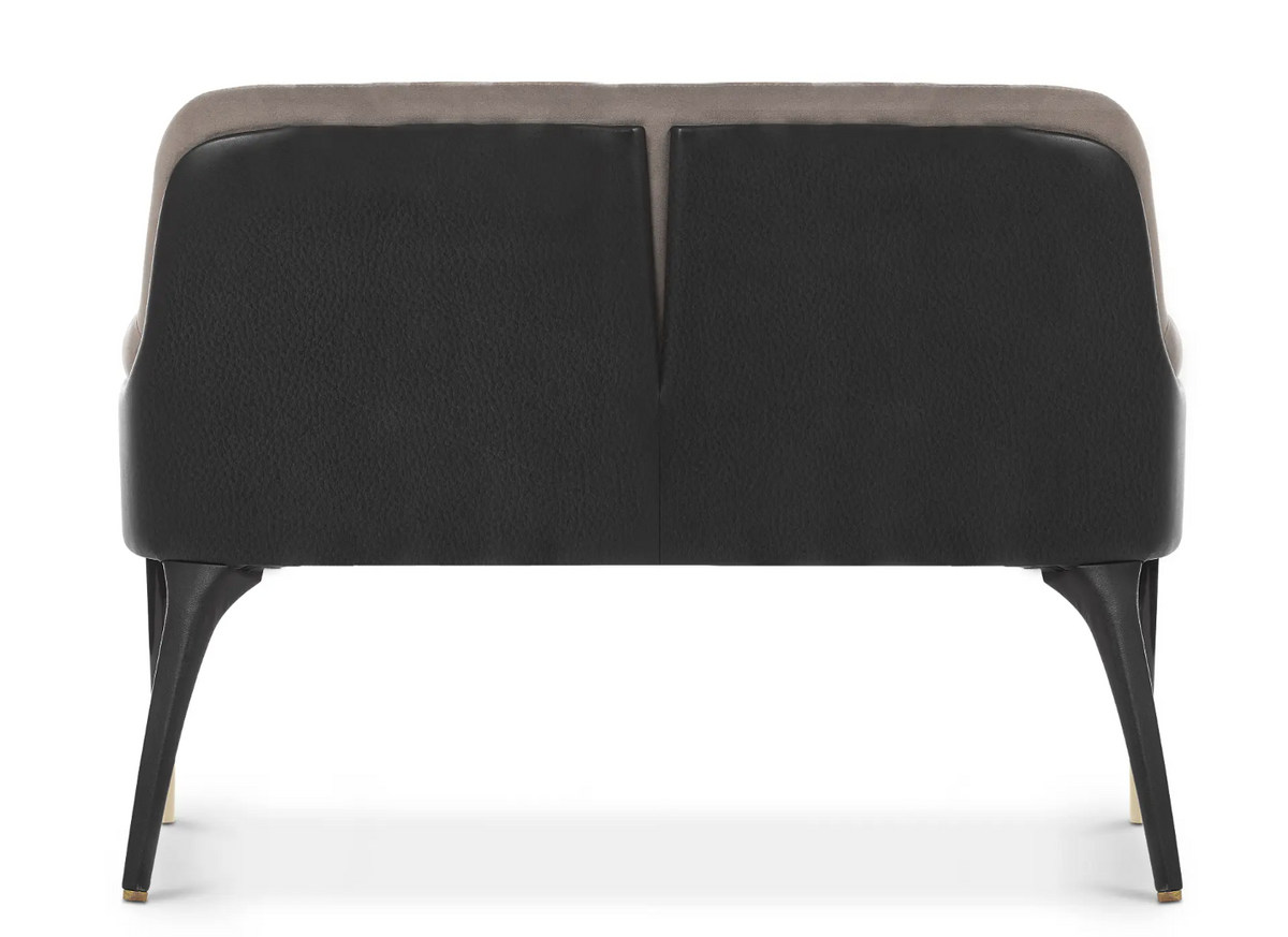 Sofa Charla marki Luxxu wykonana z aksamitu, mosiądzu i lakierowanego drewna. Stylowe rozwiązanie i elegancka kompozycja dla dwojga.