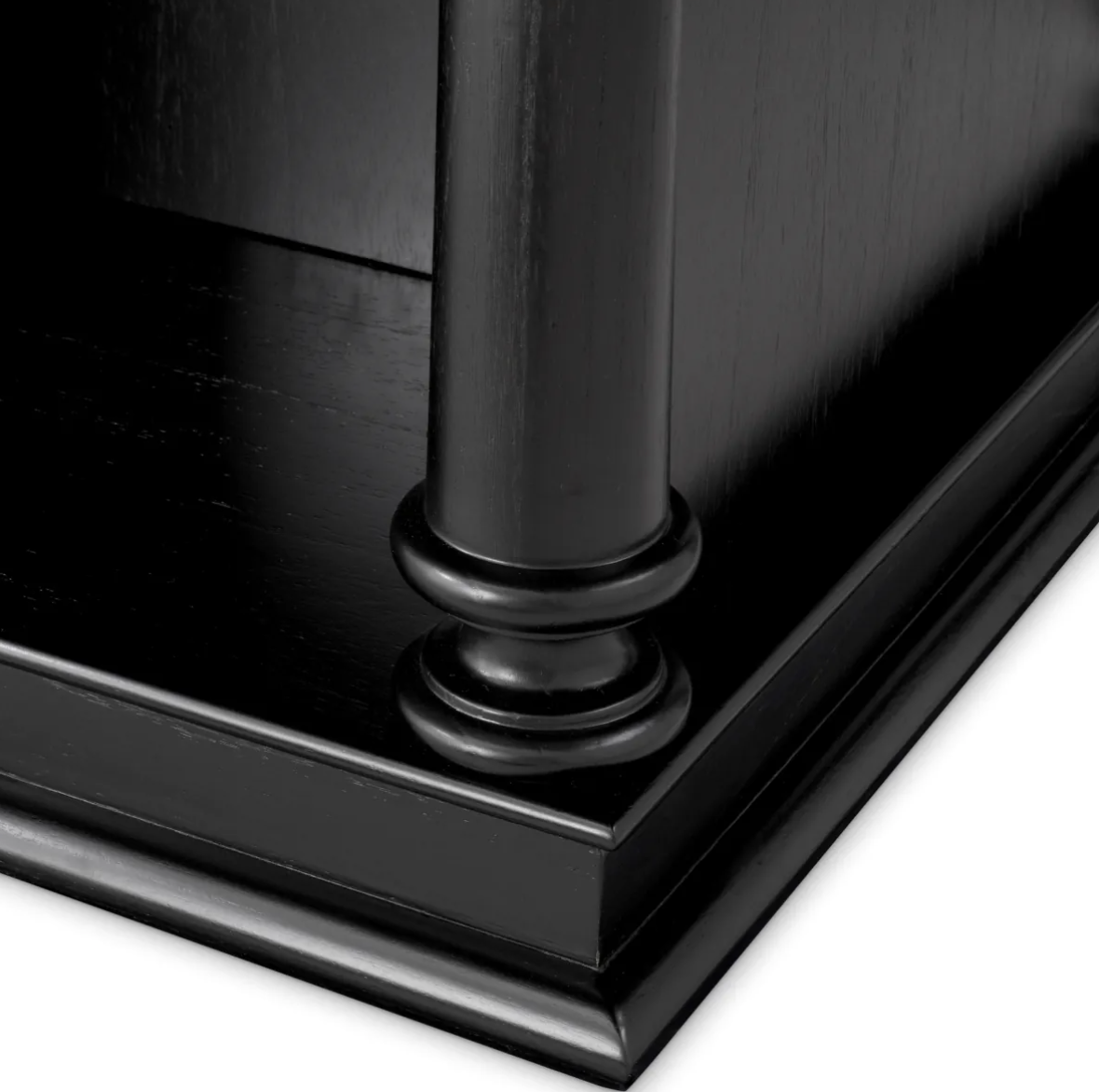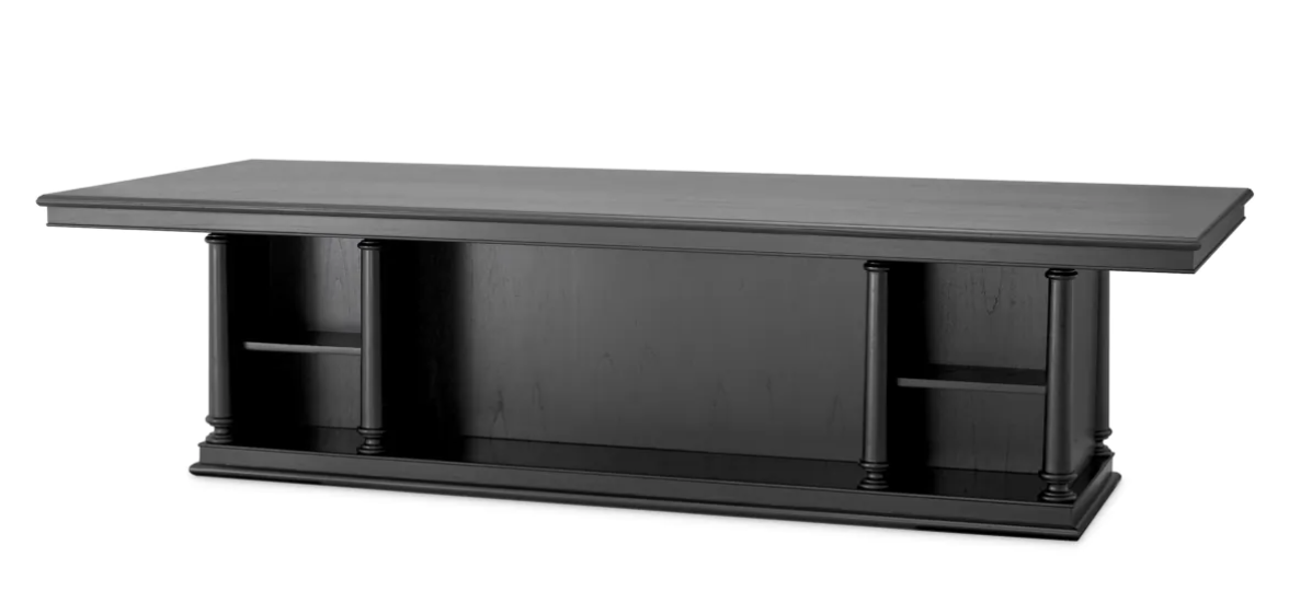- Stół Library marki Eichholtz, wykonany z eleganckiego czarnego forniru, zainspirowany niepublikowanym projektem z „Gentleman and Cabinet Maker's Director” Chippendale'a, uosabia ducha klasycznego designu.