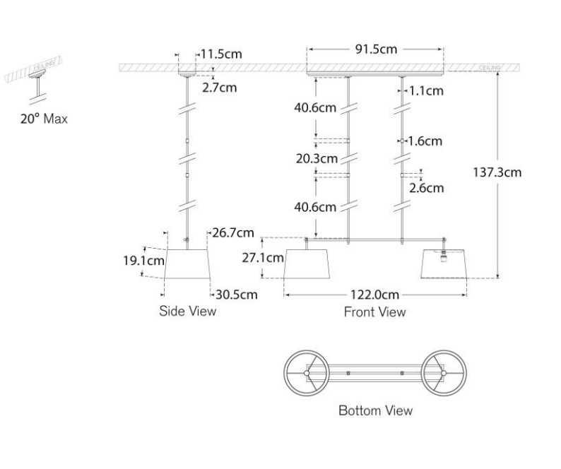 - Wymiary: wys. 137.2 x szer. 30.5cm - 121.9 cm.
