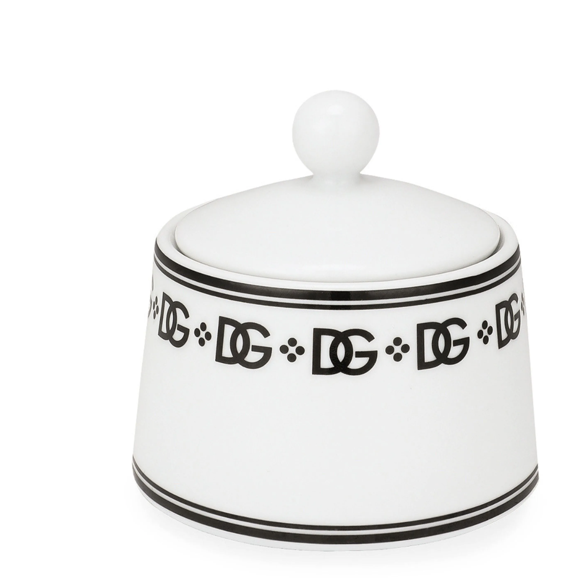 Cukiernica marki Dolce&Gabbana z kolekcji DG Logo, dzięki technice wybranej do produkcji niezwykle odporna na zarysowania i otarcia. Logo DG jest głównym bohaterem tej eleganckiej porcelany. Wysokość: 10 cm