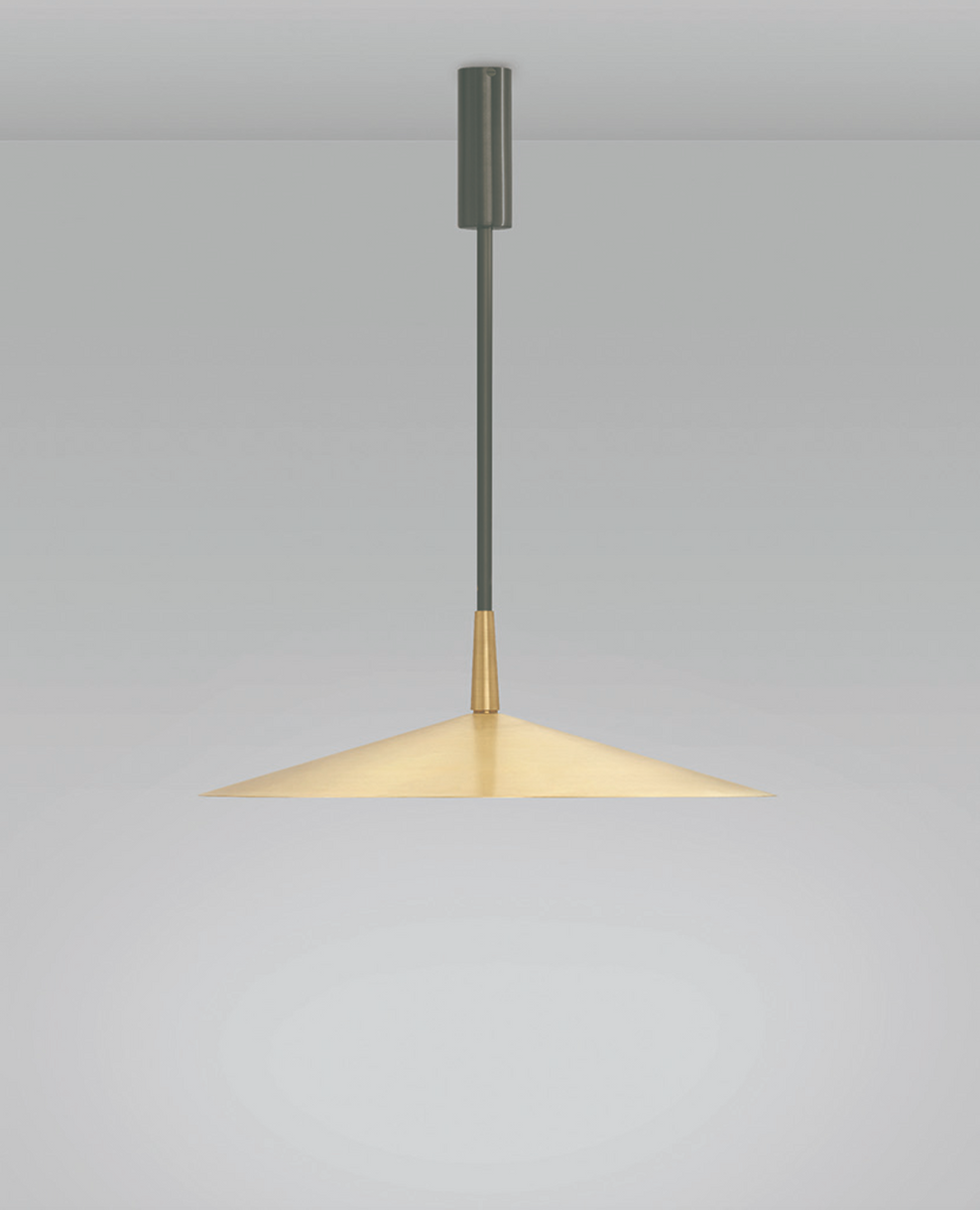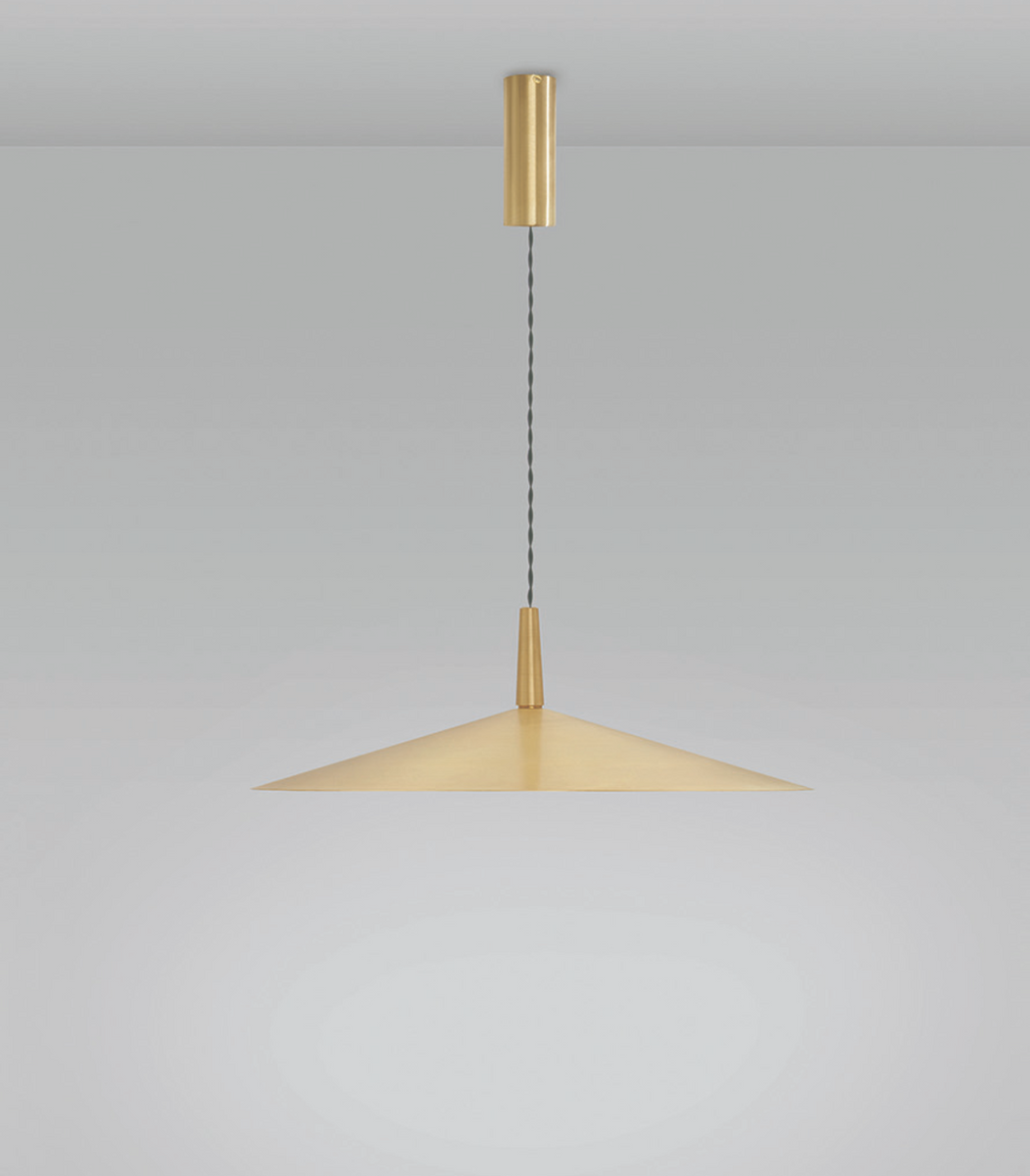 - Wisiorek Tinto marki CTO Lighting dostępny w wykończeniu z satynowego mosiądzu lub brązu, płytki stożkowy klosz i drążek są ręcznie wykańczane. Posiada diodę LED o ciepłej barwie.